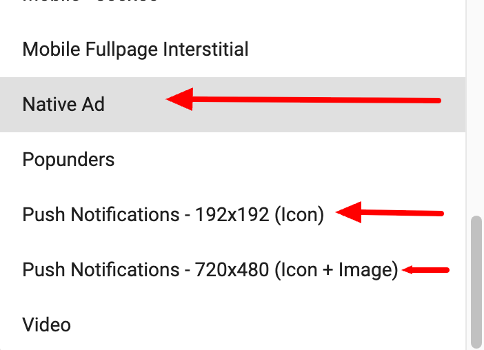 注意:プッシュ通知キャンペーンは、デフォルトでページ内プッシュゾーンもターゲットにします。In-Page Pushはリターゲティングを許可しているため、キャンペーンのセットアップ中にこの設定が利用可能になる場合があります。ただし、リターゲティングを有効にすると、In-Page Pushのゾーンからのみトラフィックを受け取ることになります。