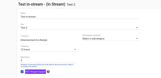 In-Stream: In-Stream の実装方法パート 2 - 実装例 に記載されているプレーヤーは、当社の広告と 100% VAST 互換性があるため、ラッパー VAST タグでも機能します。
