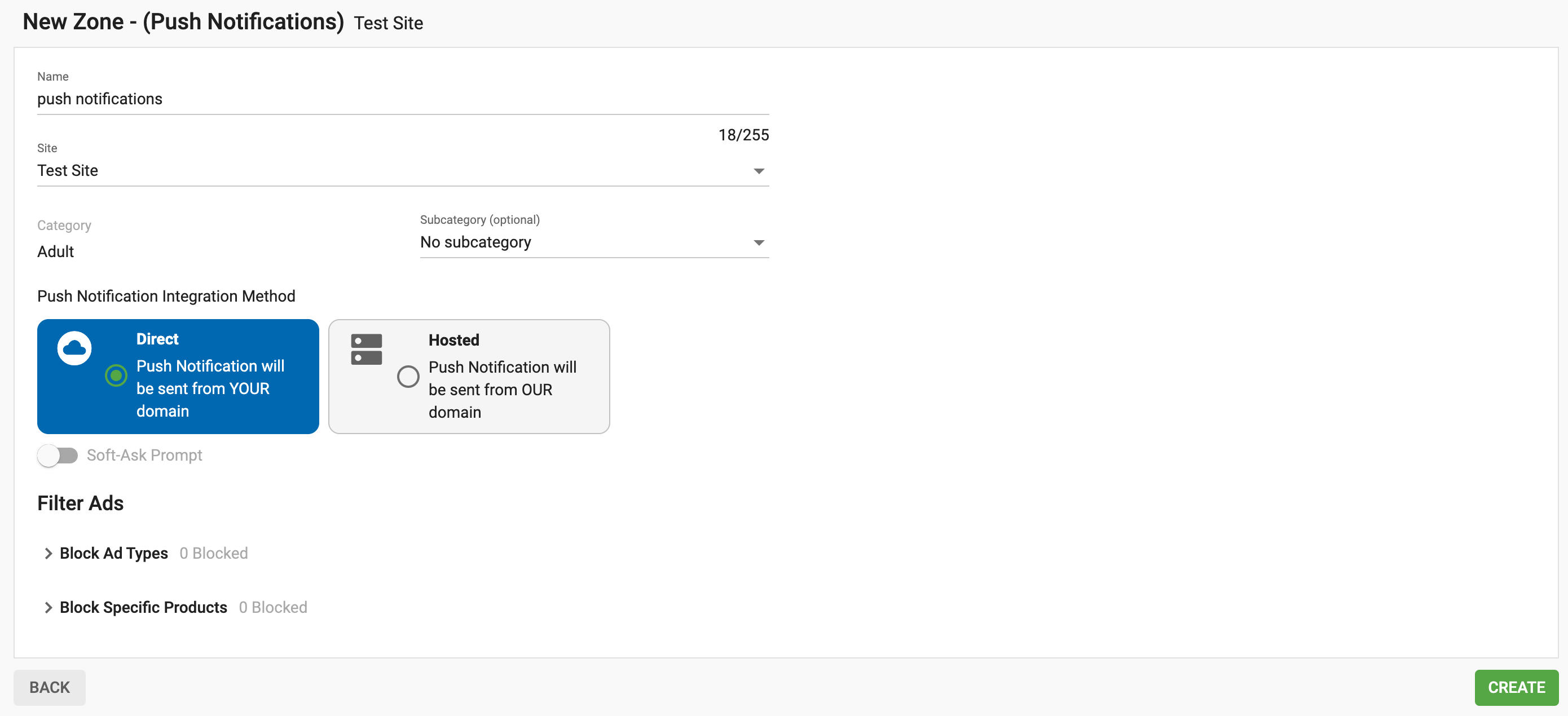 このプラットフォームのウォークスルーでは、プッシュ通知広告ゾーンの作成方法をご紹介します。